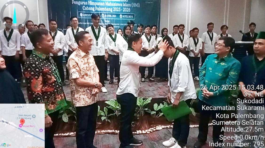 Tkpnews, Palembang — Kepengurusan HMI Cabang Palembang resmi berganti. Bayu Pratama dilantik sebagai Ketua Umum periode 2025–2026 dalam sebuah acara pelantikan yang berlangsung di Ballroom Hotel The Rids, Sabtu (26/4/2025).